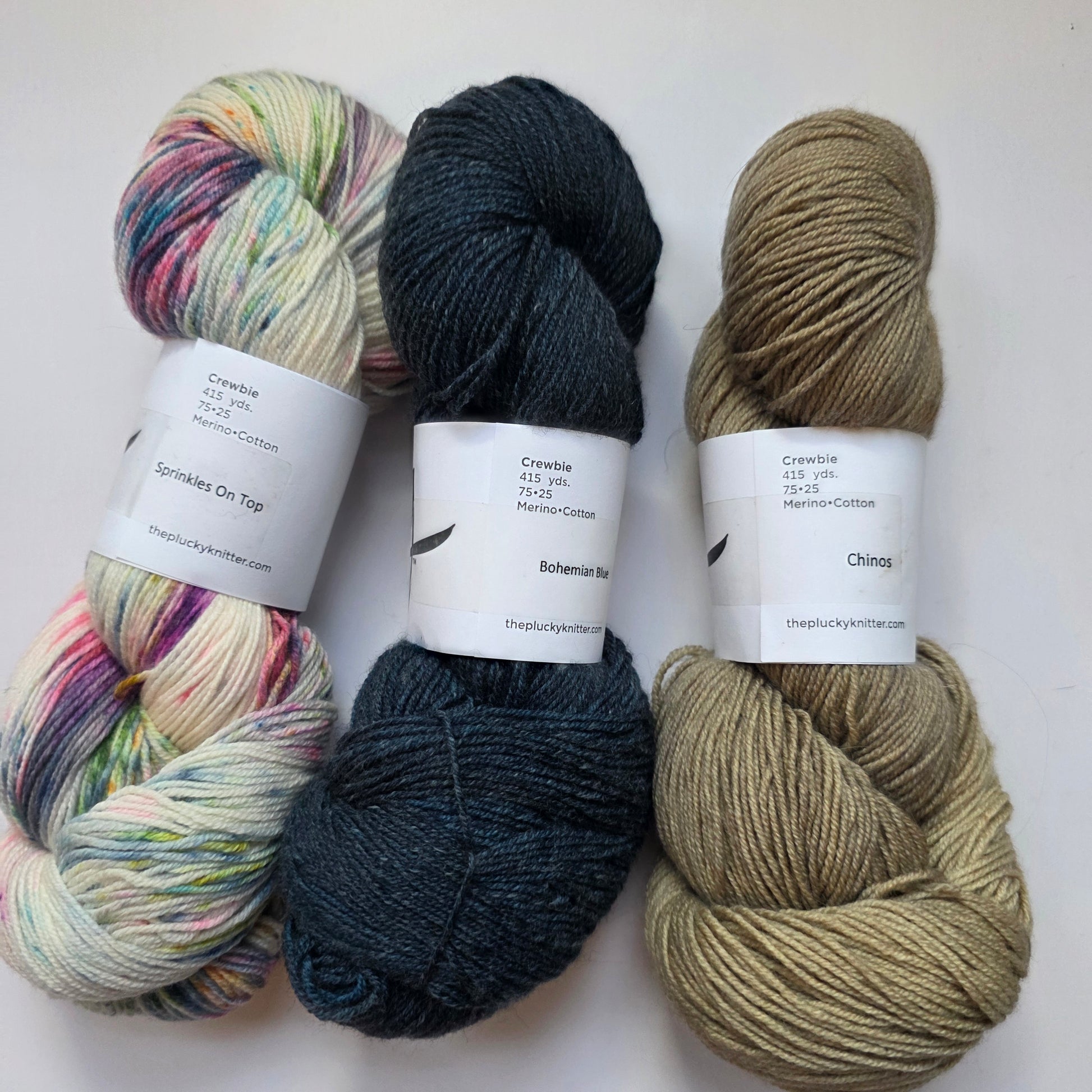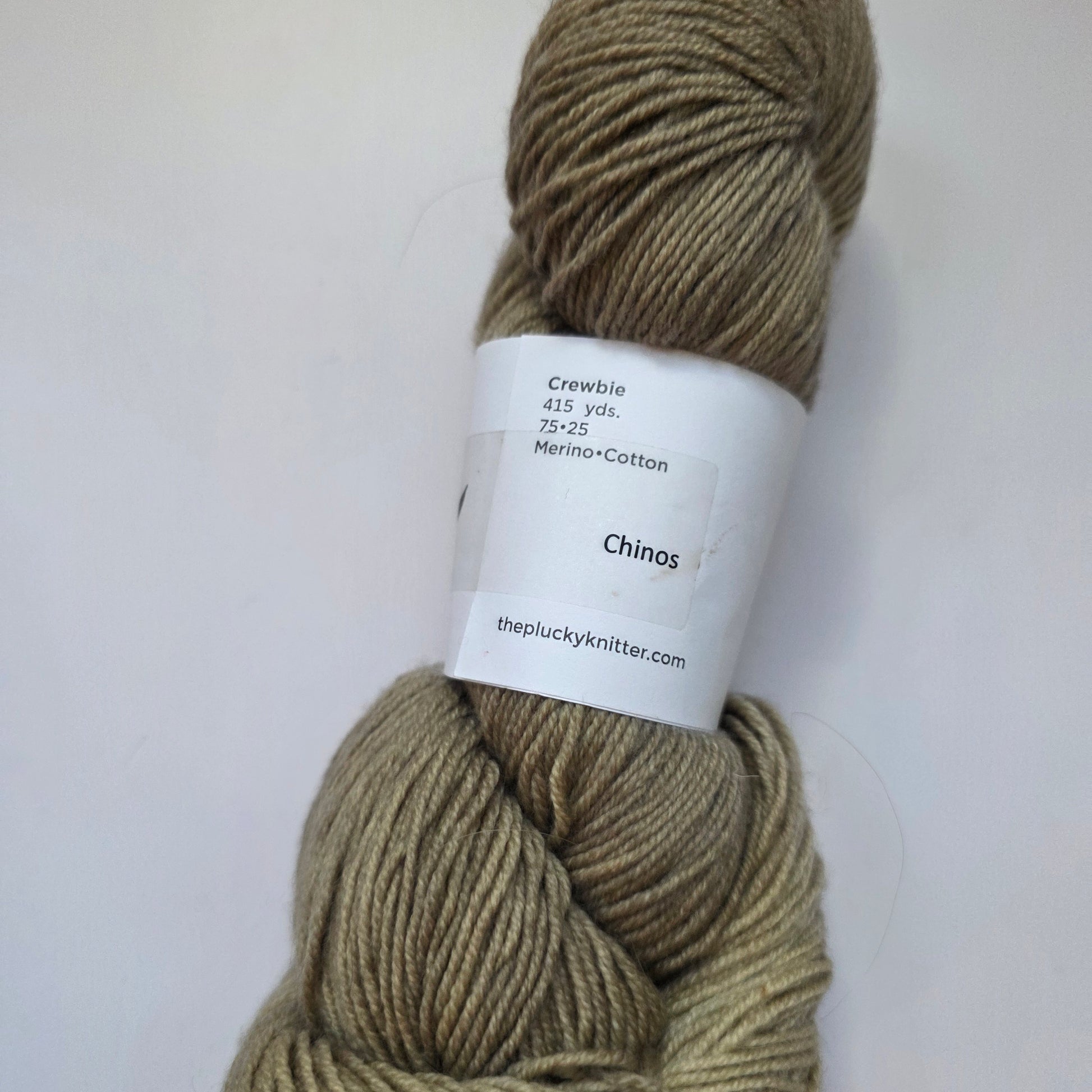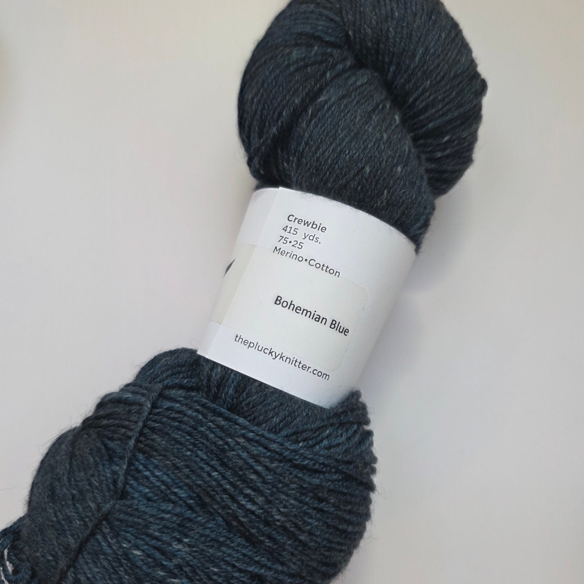 Beautiful Crewbie fingering weight yarn in a vibrant coral-red tone. This soft merino-cotton blend offers excellent stitch definition and breathability, making it ideal for shawls, socks, and lightweight garments that transition beautifully between seasons.