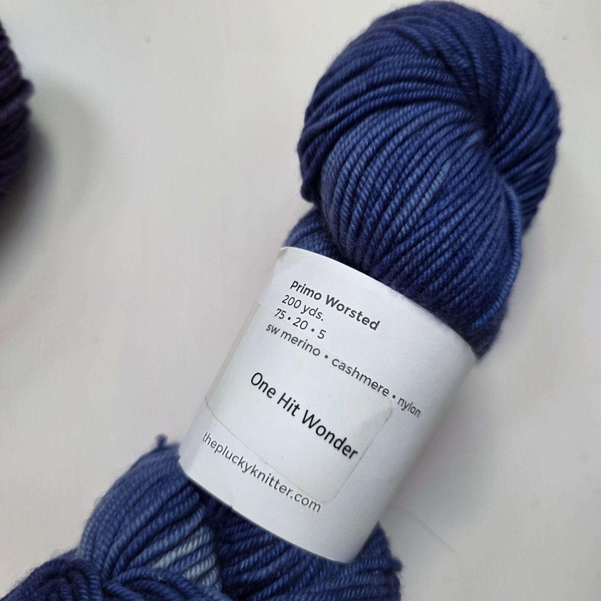 Luxurious hand-dyed Primo Worsted yarn in the stunning One Hit Wonder colorway. This premium blend of 75% superwash merino, 20% cashmere, and 5% nylon creates an incredibly soft and durable yarn perfect for your next special project.
